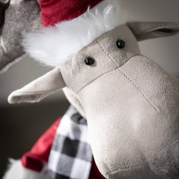 30" Multicolor Polyester Holiday Moose with Telescopic Legs