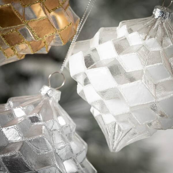 4.5 in. Faceted Drop Ornament - Set of 3, Multicolored Christmas Ornaments