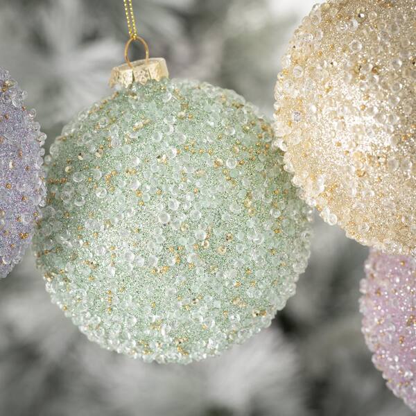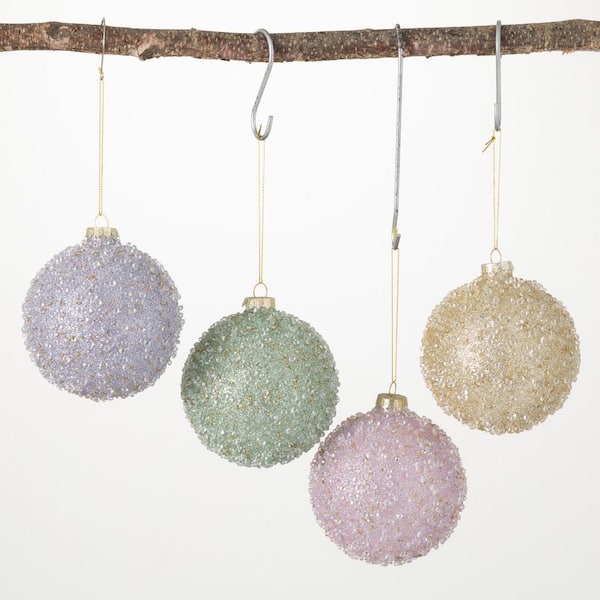 4 in. Beaded Ball Ornament - Set of 4, Multicolored Christmas Ornaments