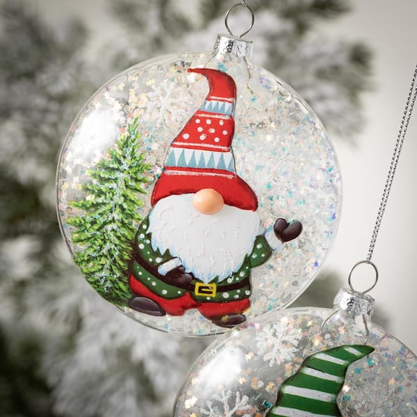 4 in. Multicolor Gnome Glass Disc Ornament (Set of 2)