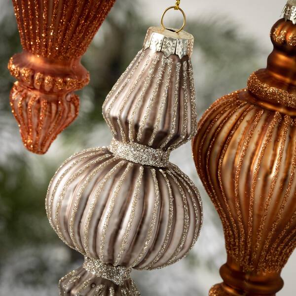 5", 5" and 5.5"Multicolor Metallic Finial Drop Ornaments (Set of 3)