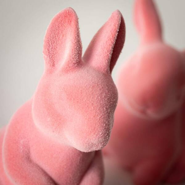 5.5 in. And 4.25 in. Pink Velveteen Bunny Set of 2, Ceramic