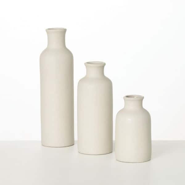 5 in. 7.5 in. and 10 in. Matte White Ceramic Bottle Vases (Set of 3)