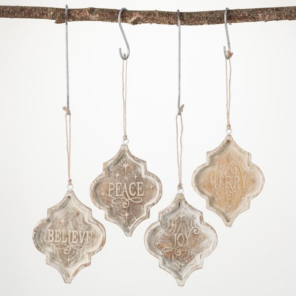 5 in. Holiday Text Wood Ornament - Set of 4, White Christmas Ornaments