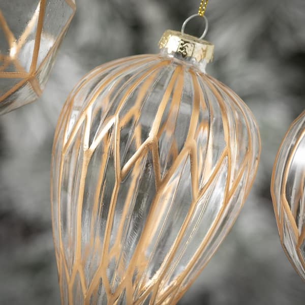 6 in. 4 in. and 4 in. Modern Gold and Glass Ornaments - Set of 3, Clear Christmas Ornaments