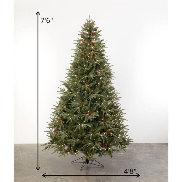 7.5 ft. Green Regular Pine Artificial Prelit Christmas Tree with Pinecones with LED Lights
