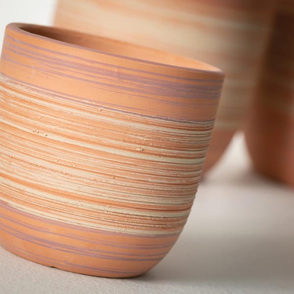 8 in. 5.5 in. and 4 in. Ceramic Striped Planter Set of 3, Brown