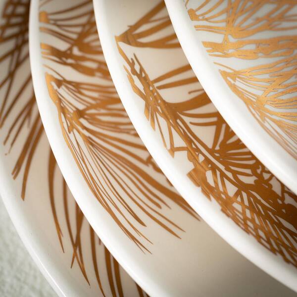 8 in. Gold Pine Snack Plate - Set of 4; White