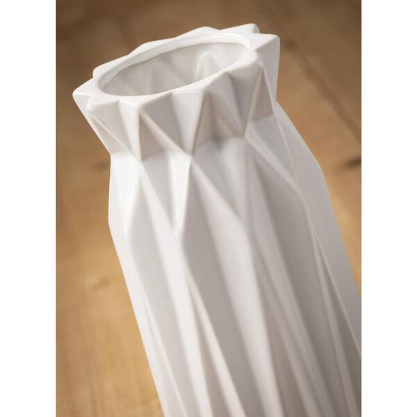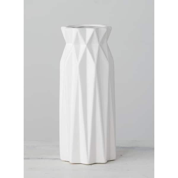 9.25" White Ceramic Geometric Vase