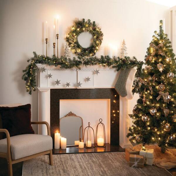 Artificial 9 ft. LED Mixed Pine Christmas Garland with Pinecones, Green