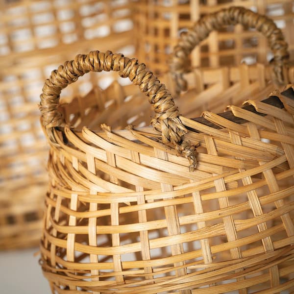 Brown 16 in. x 15 in., 11 in. x 12.75 in. and 7.75 in. x 9.25 in. Open Weave Bamboo Decorative Basket (Set of 3)