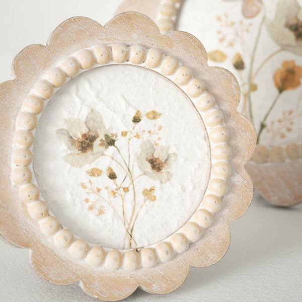 Brown 8 in. x 7.25 in. Wood Whitewashed Round Scalloped Framed Picture (Set of 2)