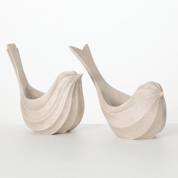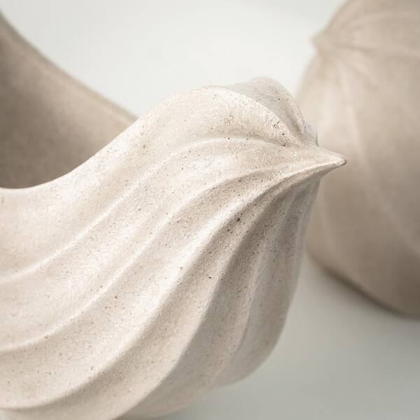 Ivory 14 in. x 10 in. Resin Sculptured Resin Bird Planter Set of 2