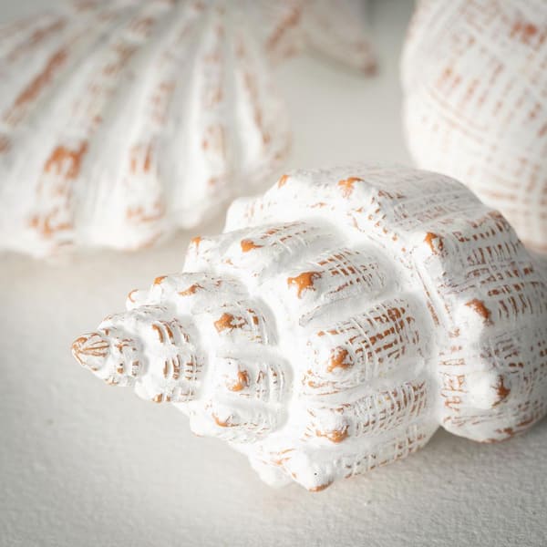 White 3.25 in. x 2.5 in. Resin Whitewashed Seashells Set of 4