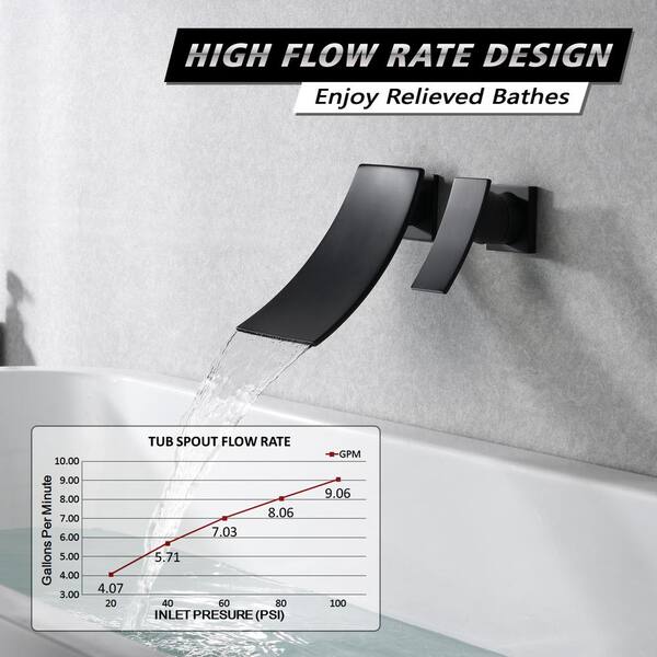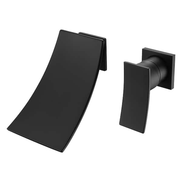 Contemporary Single Handle Wall Mounted Roman Tub Faucet with Waterfall Spout in Matte Black