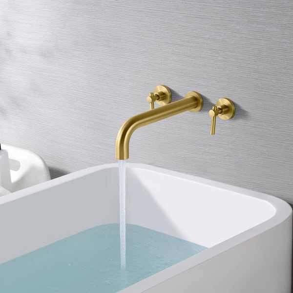 Modern 2-Handle Wall Mounted Roman Tub Faucet with Easy to Install in Brushed Gold
