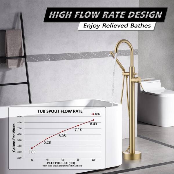 Modern Single Handle Freestanding Tub Faucet with Hand Shower in Brushed Gold