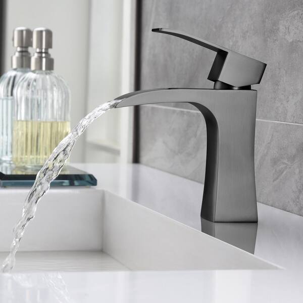 Waterfall Single Handle Single Hole Bathroom Faucet in Metallic Gray