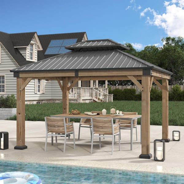 10 ft. x 12 ft. Cedar Wood Frame Hardtop Double Roof Gazebo with Ceiling Hook
