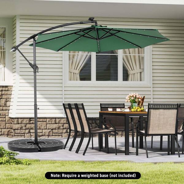 10 ft. Steel Cantilever Solar LED Offset Hanging Market Patio Umbrella in Dark Green