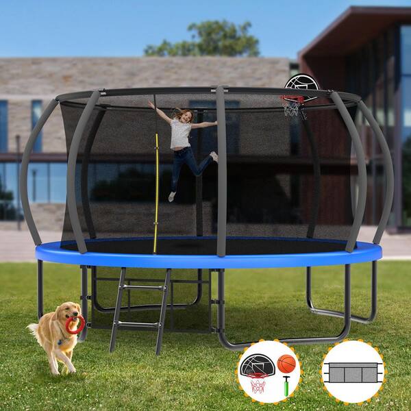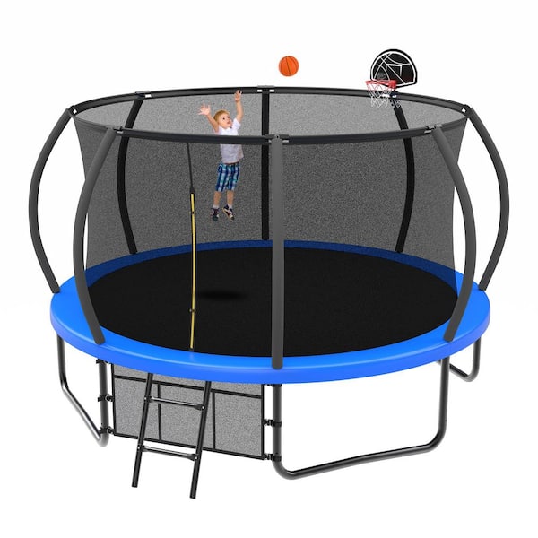 12 ft. Blue Round Trampoline with Safety Enclosure Net