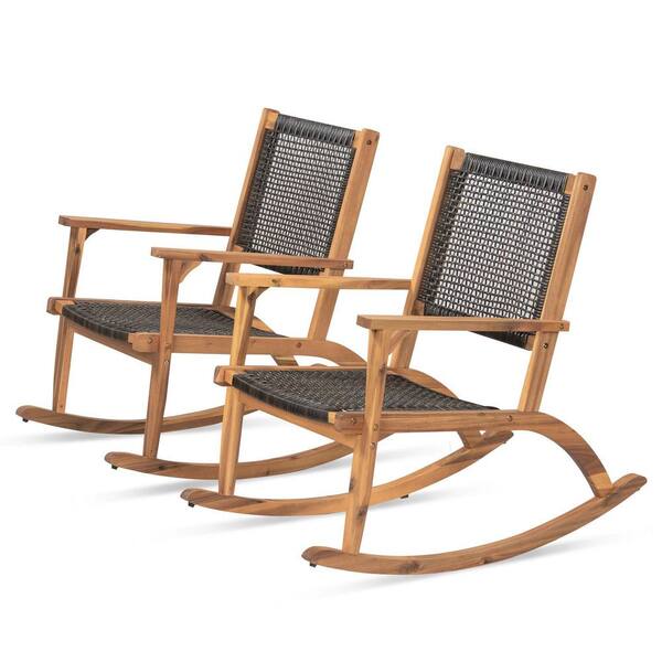 2 Pieces Natural Wood Outdoor Rocking Chair in Dark Brown
