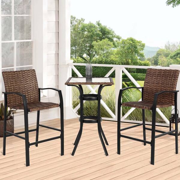 3-Piece Brown Wicker Outdoor Bistro Set