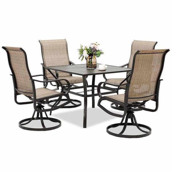 5-Piece Outdoor Patio Metal Rectangular Dining Set with Textilene Swivel Chairs