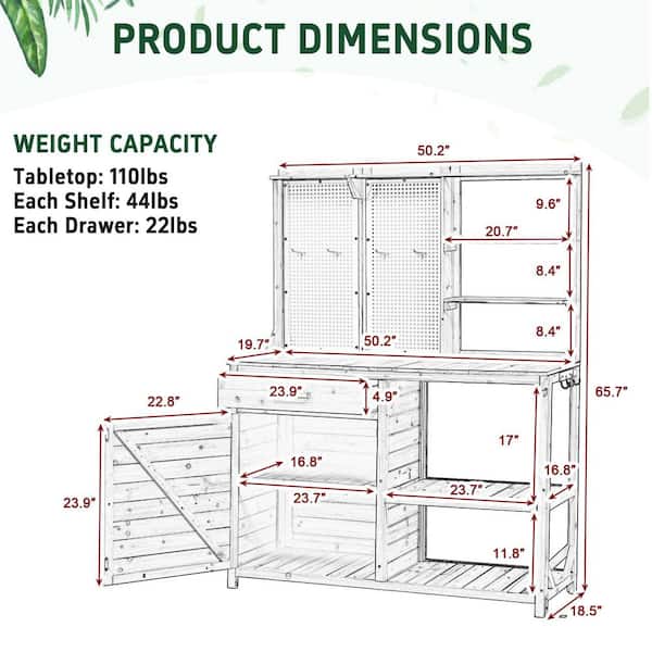 50.2 in. W x 65.7 in. H White Fir Wood Potting Bench Hutch with Adjustable Storage