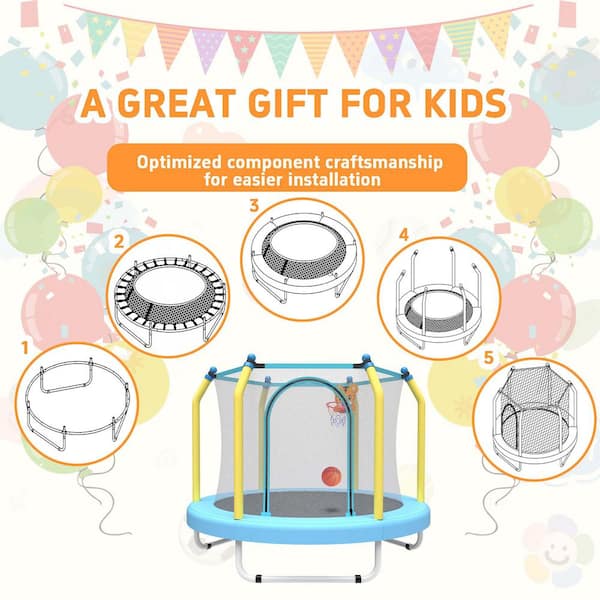 55 in. Small Toddler Trampoline with Basketball Hoop for Kids