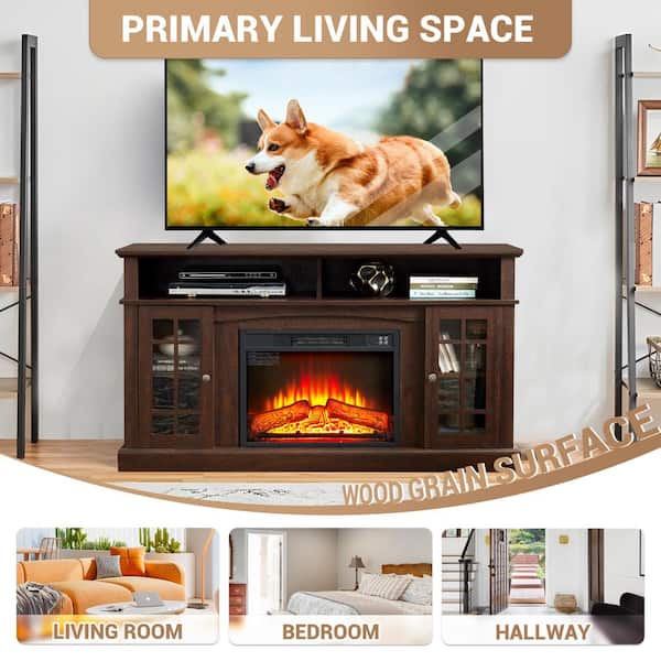 58 in. Freestanding Electric Fireplace TV Stand in Espresso