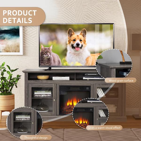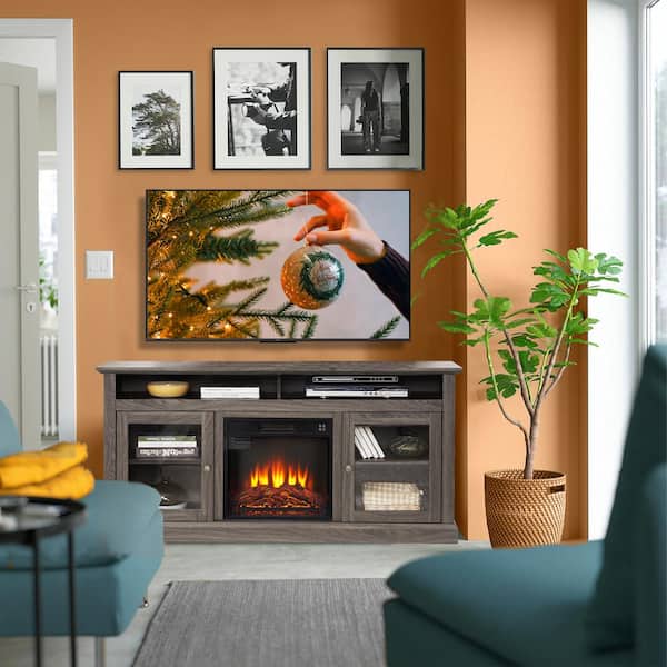 60 in. Freestanding Electric Fireplace TV Stand in Black and Drak Walnut