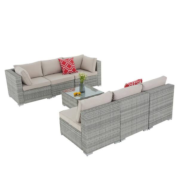 7-Piece Modular Outdoor Sectional Wicker Patio Furniture Conversation Sofa Set (Gray Frame & Beige Cushion)