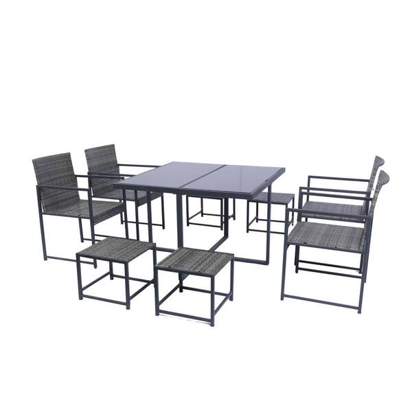 9-Piece Patio Dining Set with Gray Cushions