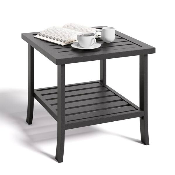 19 in. L x 19 in. W Black Square Metal Outdoor Side Table