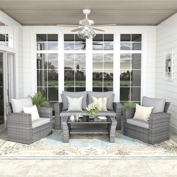 4-Piece PE Rattan Wicker Outdoor Patio Furniture Set in Grey