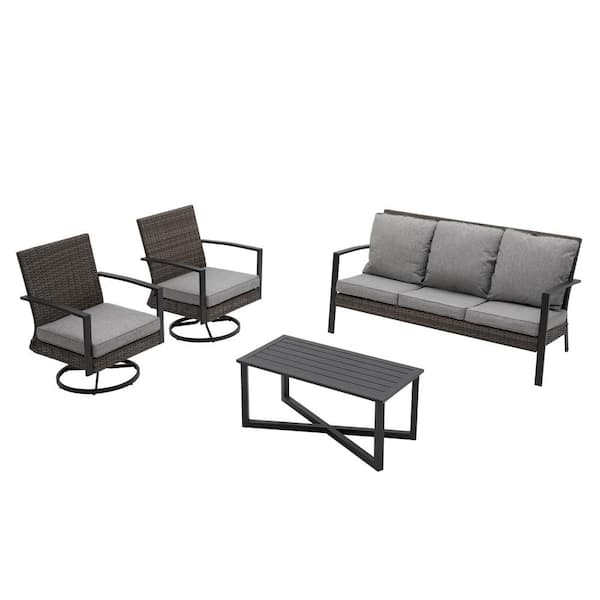 5-Person Outdoor Wicker Patio Conversation Seating Set with Gray Cushions and Coffee Table
