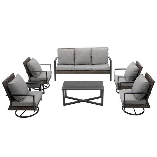 7-Person Outdoor Wicker Patio Conversation Seating Set with Gray Cushions and Tables