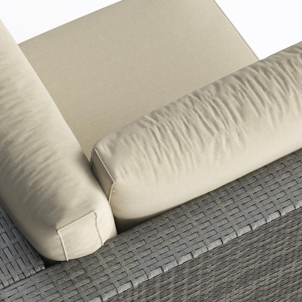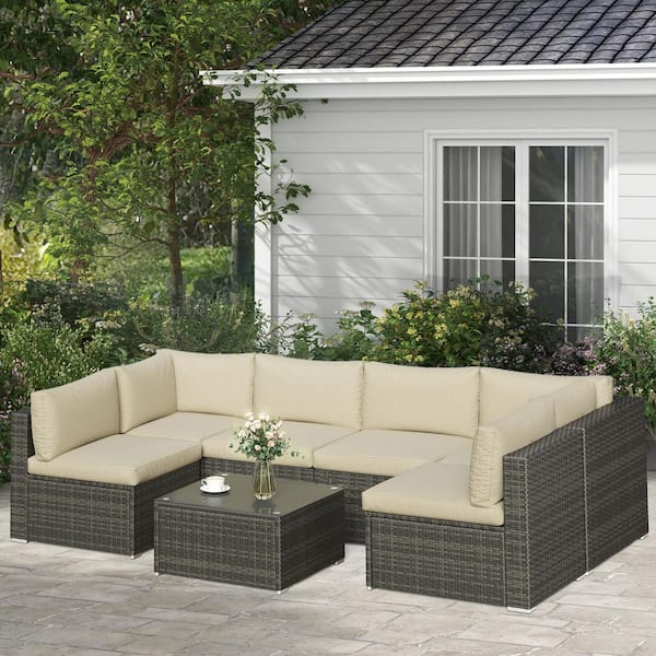 Outdoor Dark Gray Frame 7-Piece Wicker Outdoor Sectional Set with Beige Cushion