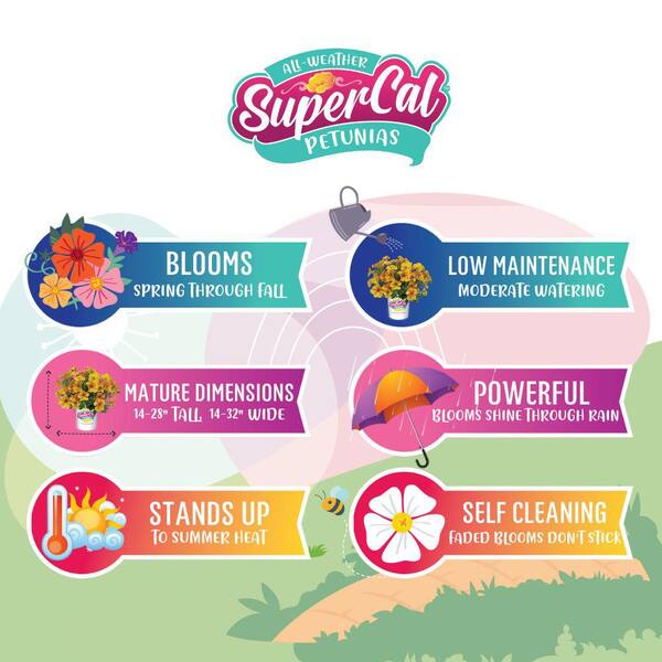SuperCal is the all-weather petunia, standing up to rain and heat