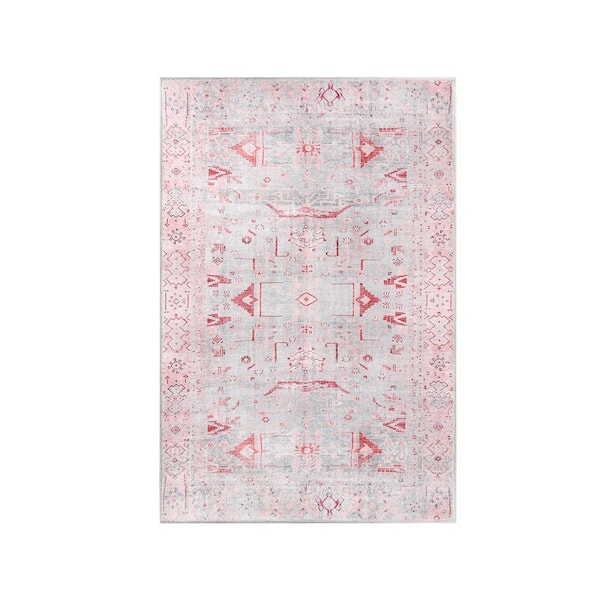 Aria Berry Red 5 ft. 7 in. x 8 ft. 9 in. Boho Geometric Distressed Polyester Indoor Area Rug