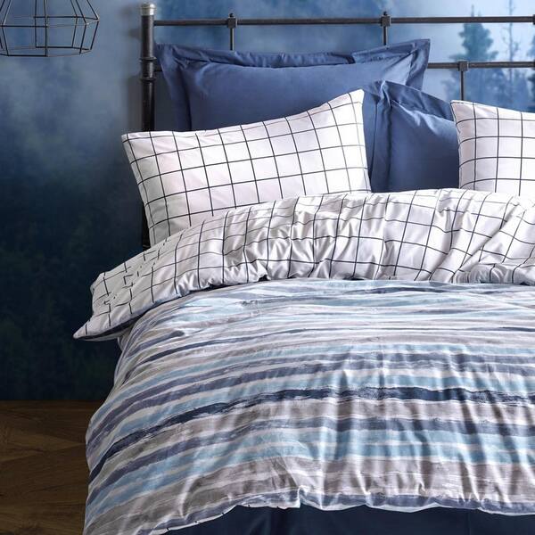 Off White Stripes Duvet Cover Set : Blue Full Size Cotton Duvet Cover 1-Duvet Cover 1-Fitted Sheet and 2-Pillowcases