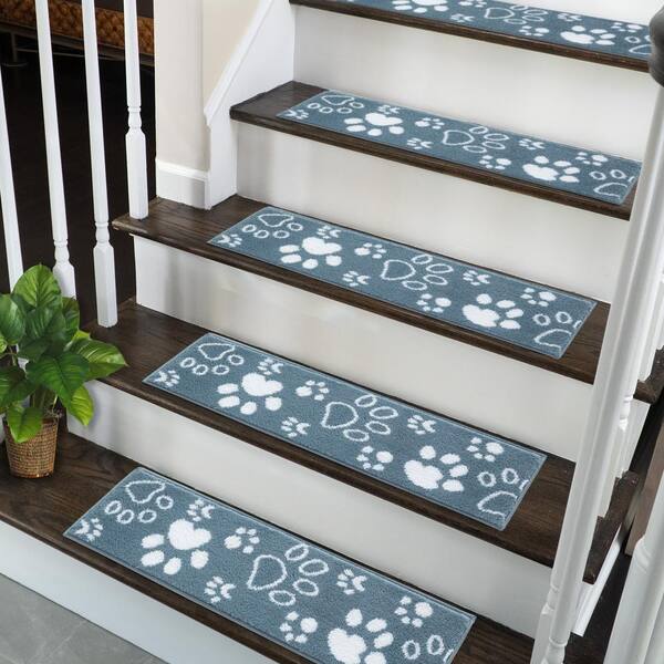 Paw Collection Teal 9 in. x 28 in. Polypropylene Stair Tread Cover (Set of 15)