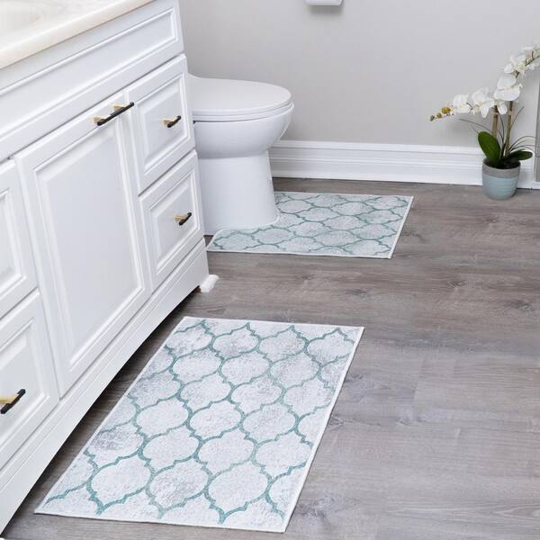 Toilet Mat Set Gray, 2-Piece Cotton Bathroom Contour Rugs Set - 20 x 31.5 in. Large Sink Bathmat, 20 x 24 in. Toilet Rug