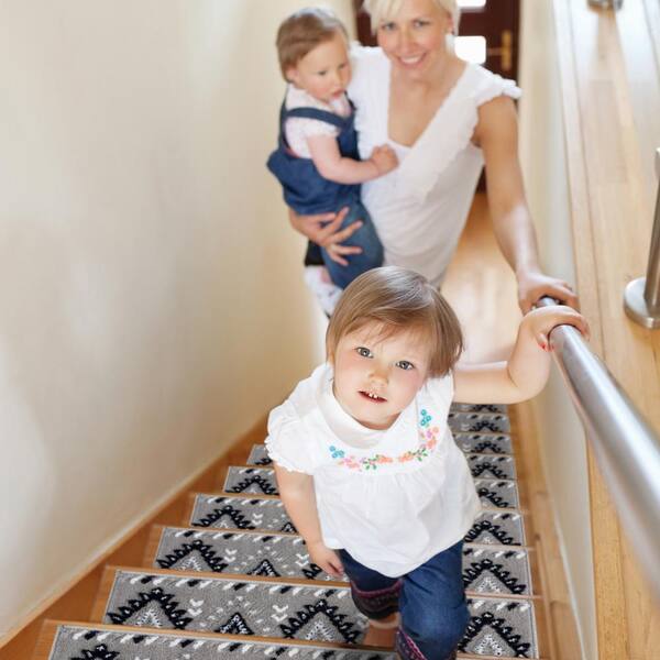 Traditional Collection Navy 9 in. x 28 in. Polypropylene Stair Tread Cover (Set of 15)