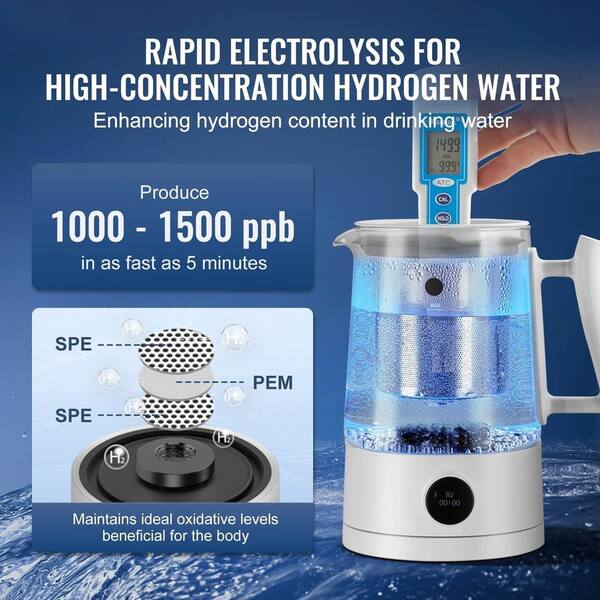 1.5 L Hydrogen Water Pitcher Generator, Hydrogen Rich Water Ionizer, SPE and PEM Technology, for Tea and Coffee Brewing