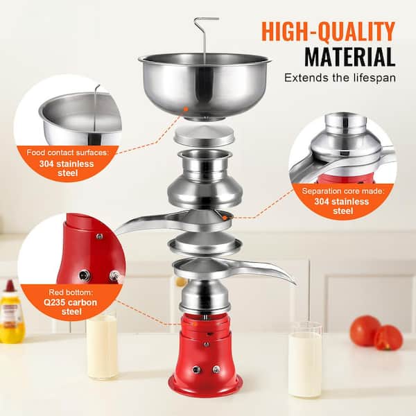 100 l/H Cream Separator, Sliver, 304 Stainless Steel Electric Milk Frother, 10500RPM Goat and Cow Milk Separator