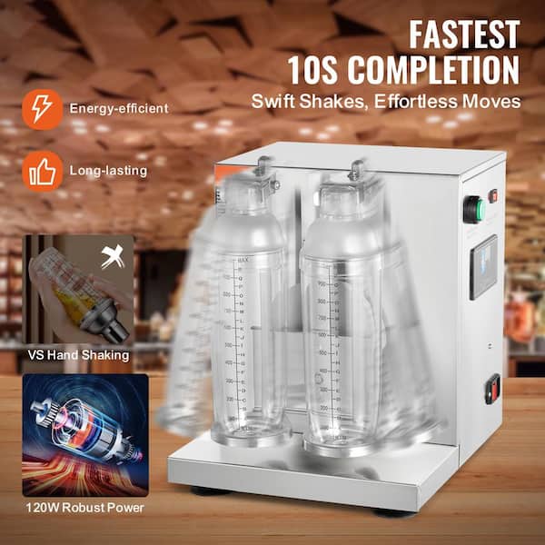 120W Milkshake Maker Machine Double Head Commercial Milk Tea Shaker Adjustable Blender with 1L PC Cup for Milk in Silver