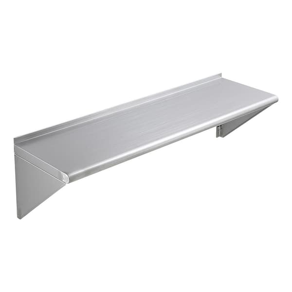 14 in. x 48 in. Stainless Steel Wall Mounted Shelf, Floating Shelving with Brackets, 400 lbs. Load Capacity. Silver.