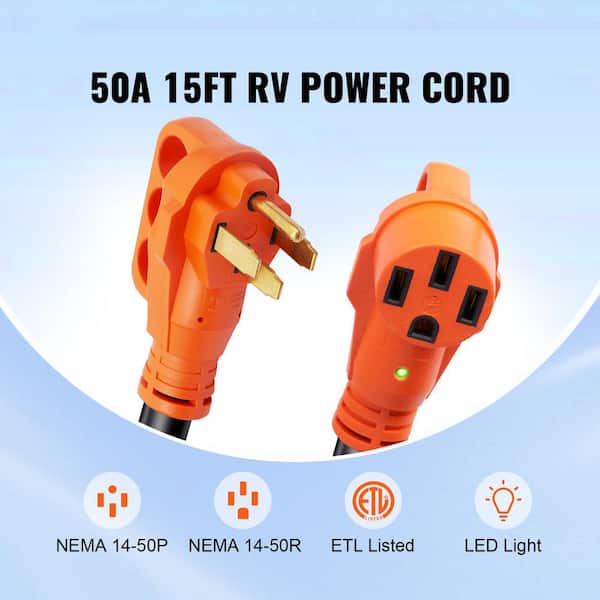 15 ft., 8 Gauge / 4 Conductors, Jacket Rating, 50 Amps, 250Volts RV Marine, Extension Cord with Lighted End Locking Plug